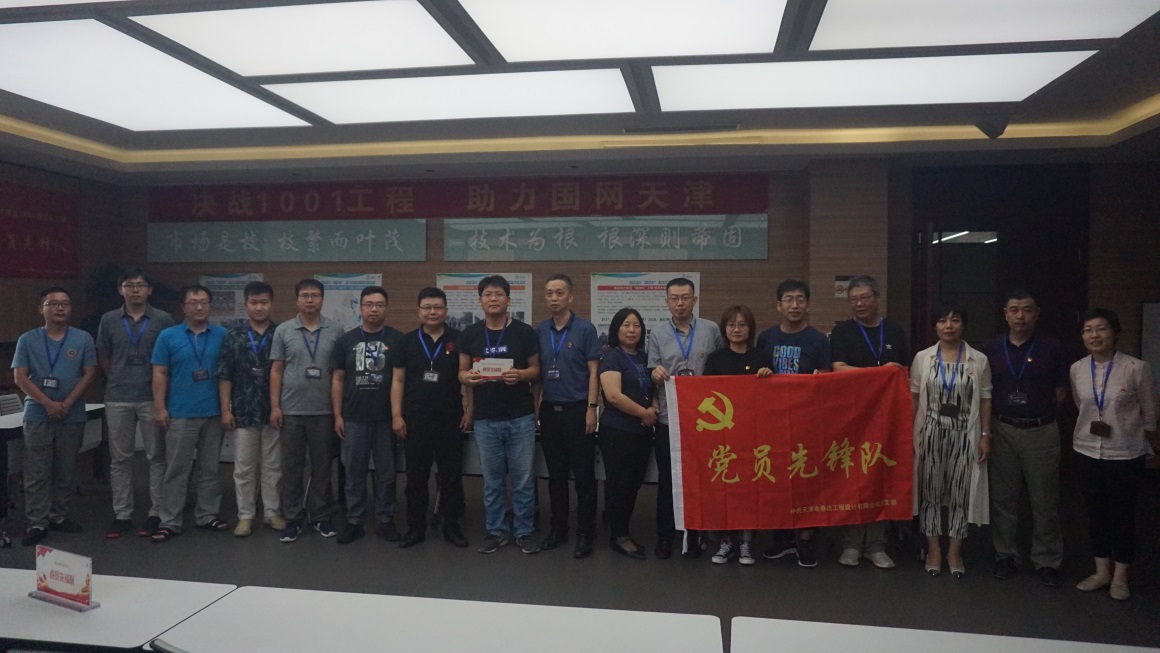 6月29日,在迎接中國共產黨建黨99周年之際,公司黨總支部為重點工程項目組寶坻220千伏變電站重建工程項目組、泰達國際心血管病醫院項目組,舉行了黨員先鋒隊授旗儀式。