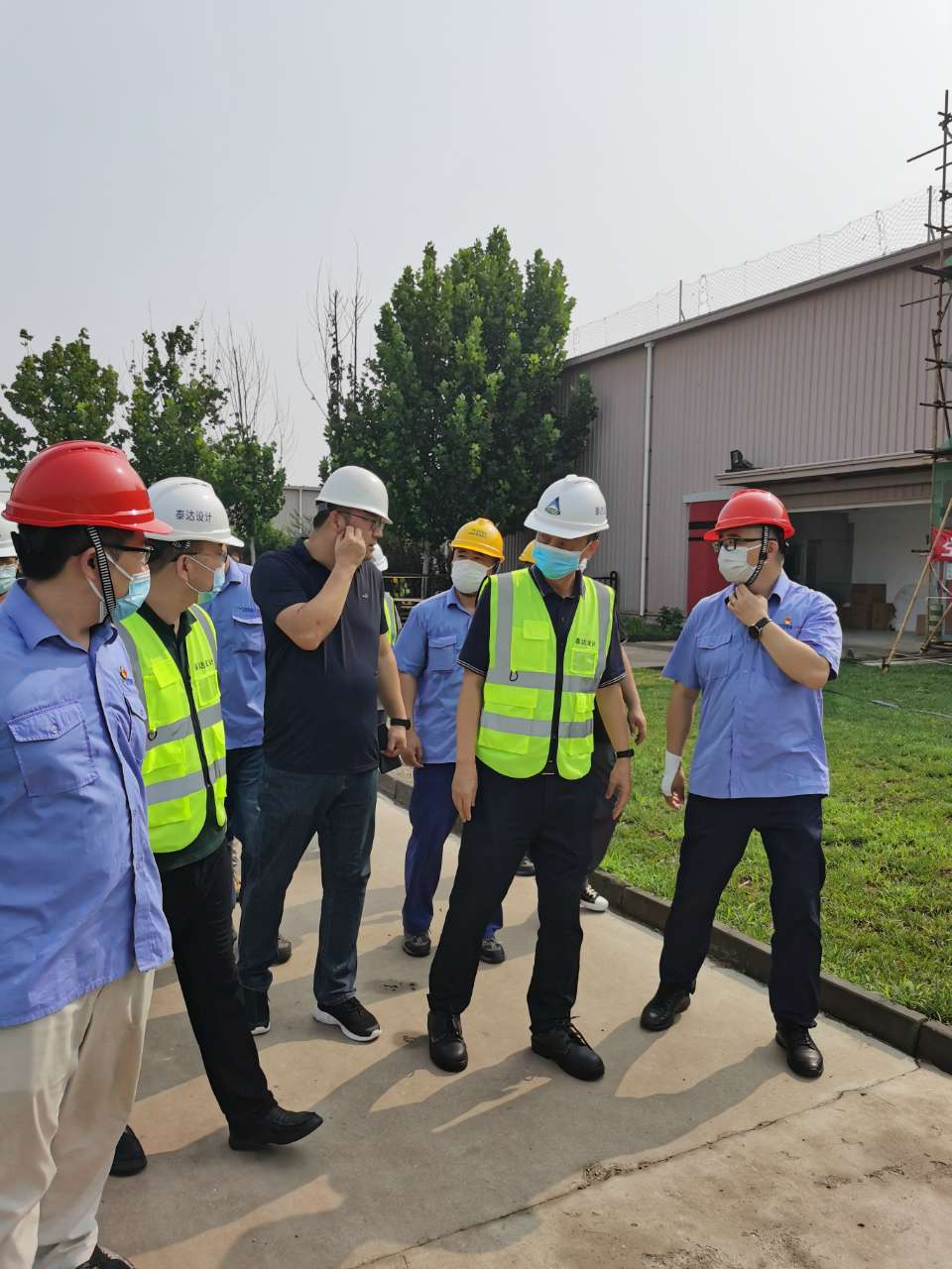 8月4日,公司董事長武文杰陪同天津泰達電力有限公司董事長兼總經理王衛華視察美克項目現場、慰問前線員工,副總經理孔祥輝一行陪同視察。