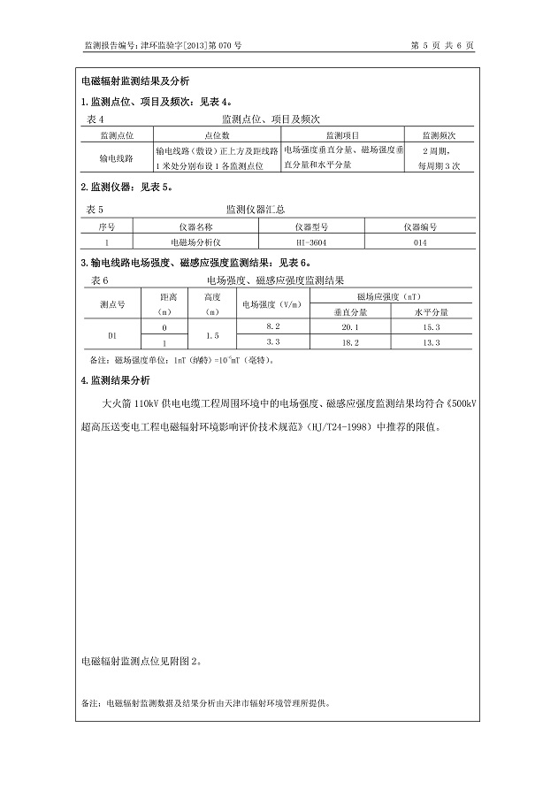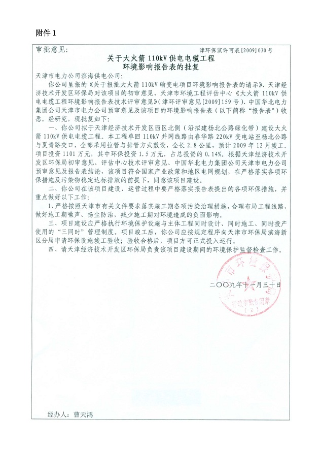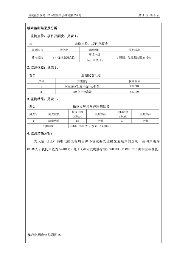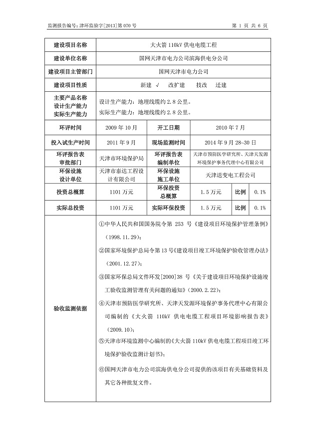 大火箭110kV供電電纜工程環(huán)保驗收監(jiān)測報告表公示